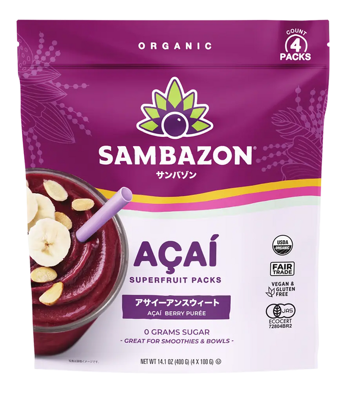Fiber not only helps to balance blood sugar, but it also feeds healthy bacteria in your gut and is beneficial for optimal digestion. Açaí is very dense in fiber and you can get as much as 3g (11%DV) in one of SAMBAZON’s Superfruit Packs! You can also add other fiber-rich foods to your Açaí bowls such as chia seeds which offer up 4g of fiber per tablespoon to get an extra boost.